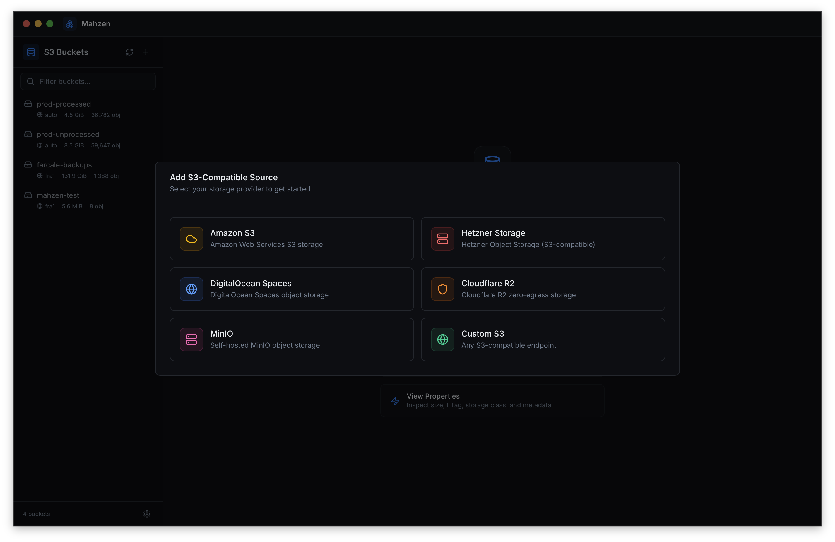 Mahzen brings all your S3-compatible storage into a single, beautiful desktop app. No more juggling browser tabs and web consoles.